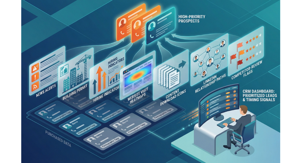 This isn’t about abandoning purchased data it’s about recognizing that purchased lists answer “who could buy” while internal intelligence answers “who’s likely to buy now.” The combination is exponentially more powerful than either alone.