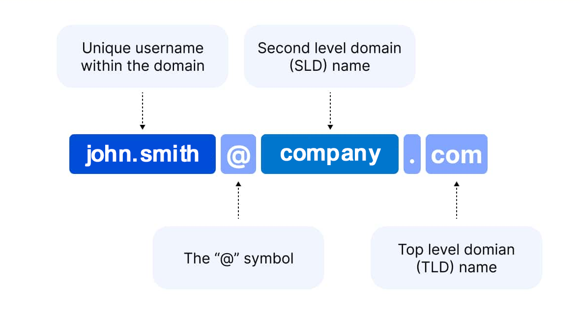 - Domain part (after @): Must be a valid, registered domain with mail exchange capabilities