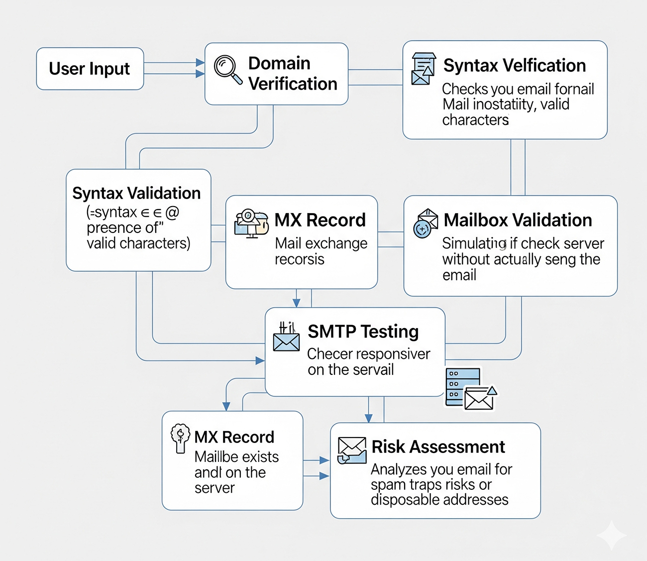 Email verification is the process of confirming whether an email address is valid, active, and capable of receiving messages without actually sending an email to that address. This critical practice involves checking various technical components including syntax formatting, domain validity, mail server configuration, and recipient mailbox status.