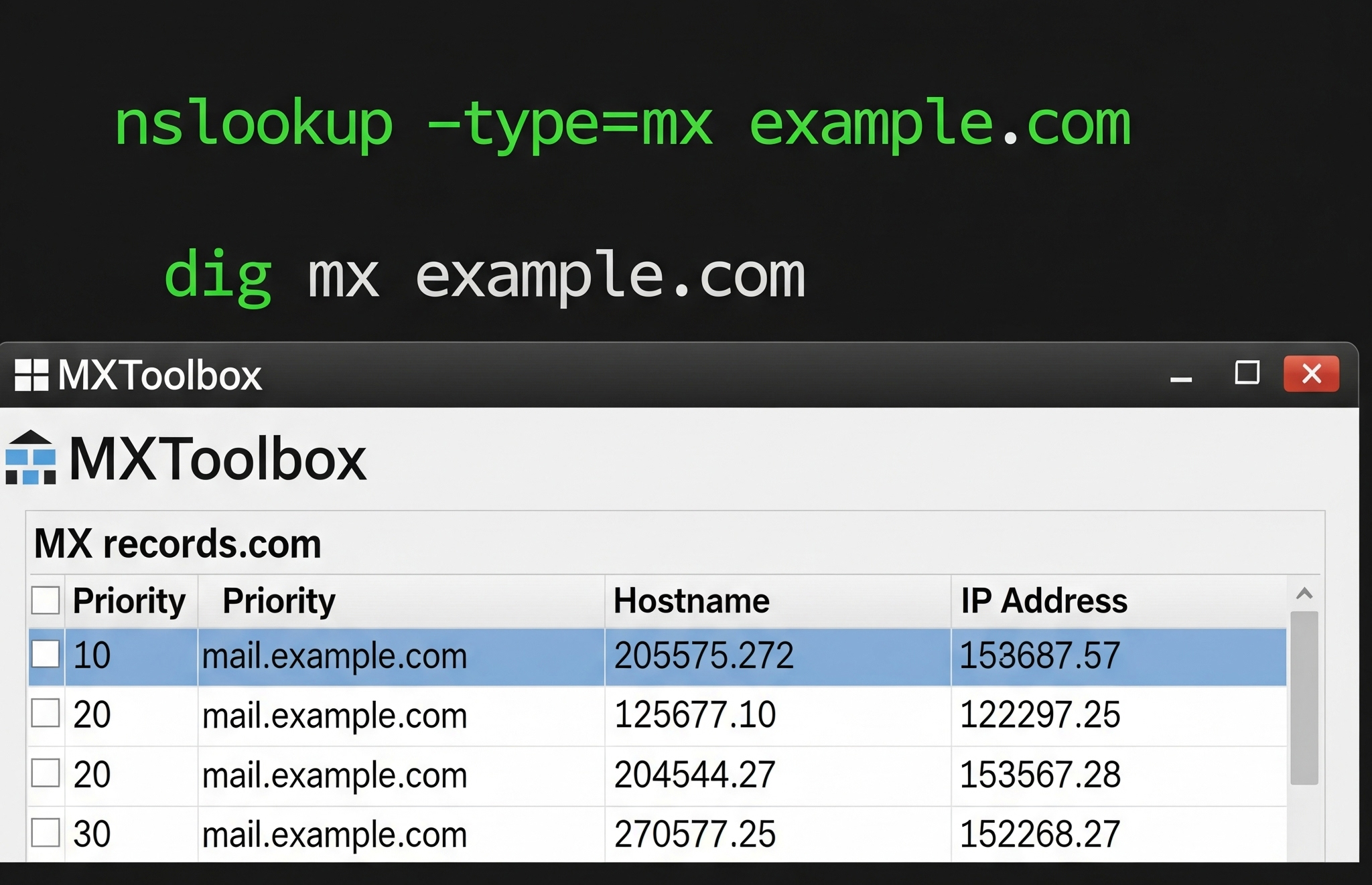 - Sender’s mail server queries DNS for recipient domain’s MX records